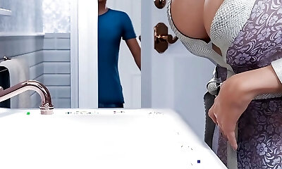 Skinny Boy Fucks Big Culo & Big Tits Wife in the Bathroom