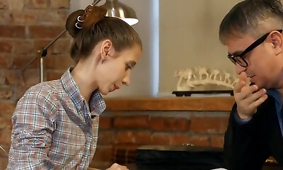 Pervy tutor spunks in his skinny student !