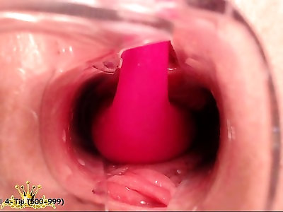 Slick vagina close-up in web cam