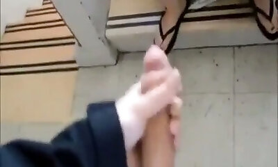 A stranger damsel jerked off and sucked my cock in a instruct on public