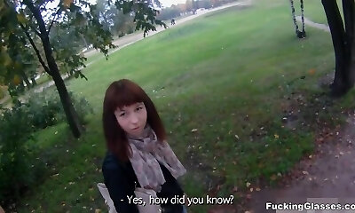 Picked up muddy brown-haired in glasses Ruby Summers gets poked in the park