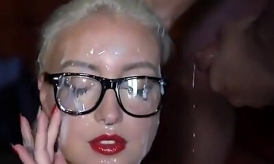Mass Ejaculation beautiful girl with glasses (slowmotion)