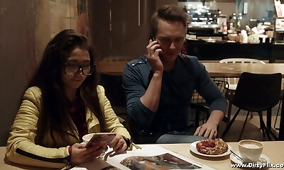 Bashful blonde Hanna Rey with glasses having hook-up with her boyfriend