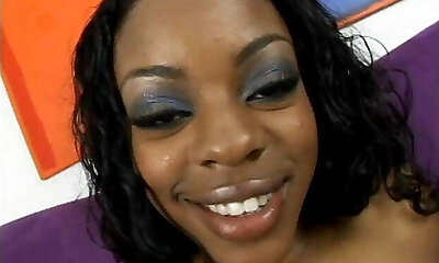 Black fellow wearing glasses fucks shaved cunt of sexy ebony teen