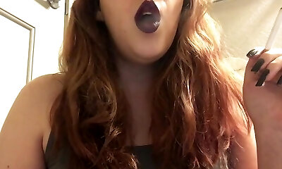 Sexy Chubby Goth Teenage Smoking Red Cork Tip 100 Cigarette in Purple Lipstick