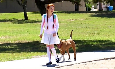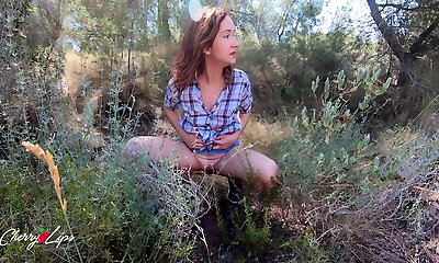 Redhead hotty goes outdoors only to play around with her private parts
