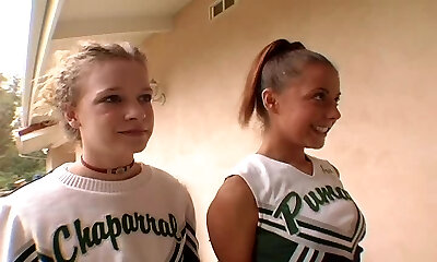 Cheerleader in panties licking balls in ffm porno shoot